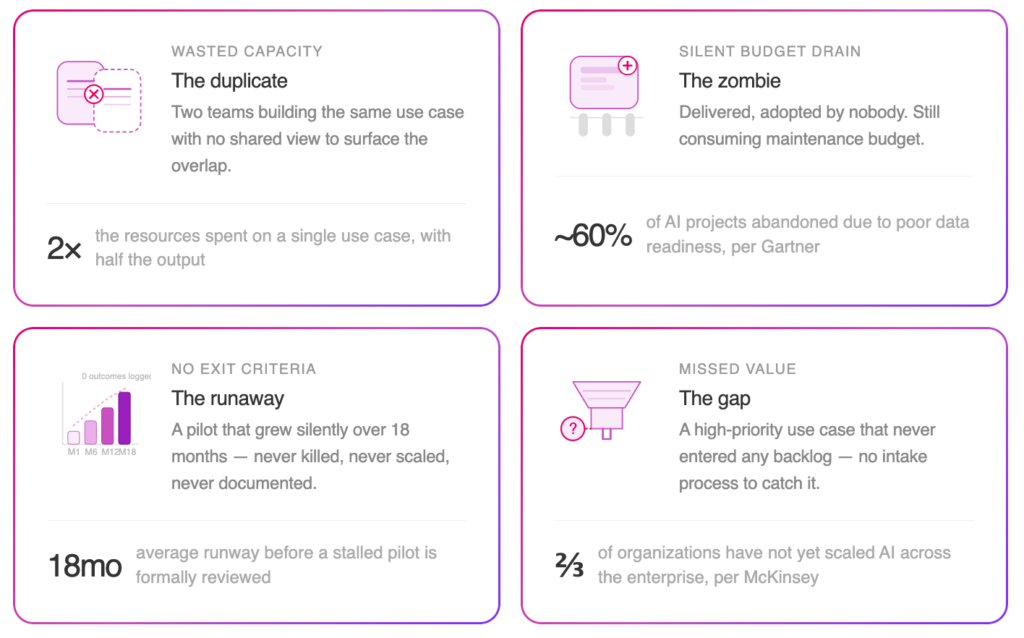 Résultat : une visibilité complète du portefeuille, plus de 300 cas d’usage centralisés, et des décisions basées sur la valeur accélérées à l’échelle de l’organisation.